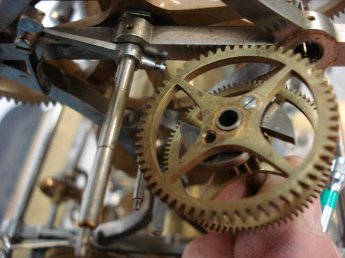 pinion and we can see the lever ending in the square end waiting to be