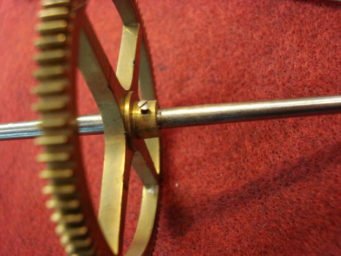 wheel to an arbor. This wheel requires removal to dismantle the clock. We