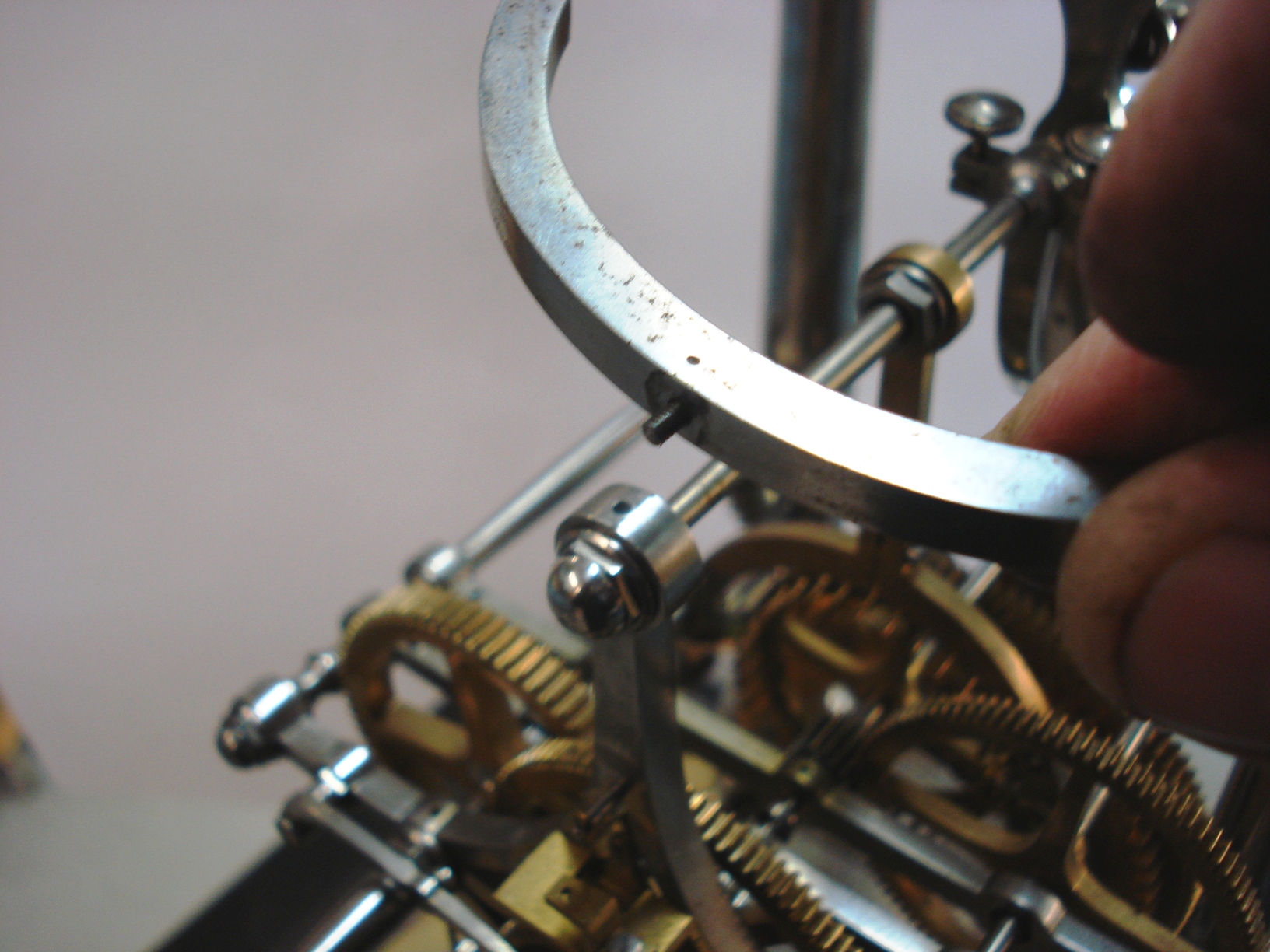 brass has been exposed for the vertical pivot just before the right-angle
