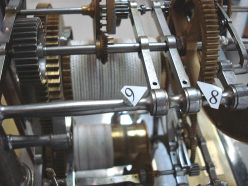 above the bell we have the drive from the strike train that goes up to the