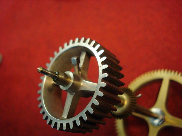 normal pivot. Also shown is the hexagonal nut which clamps the great wheel