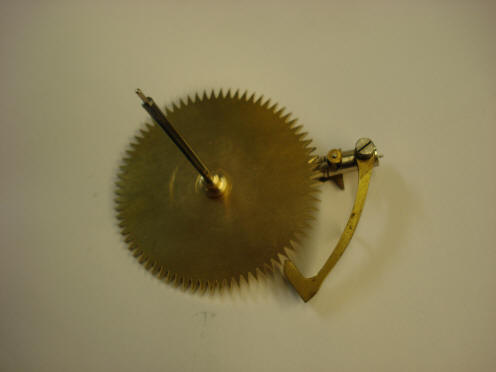 to this arbor. The wheel has 73 teeth and is driven once every five days for