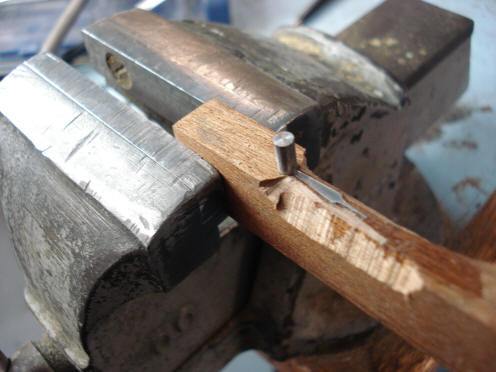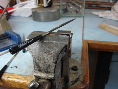 and the hole drilled in the end fitted onto a pair of filing buttons used to
