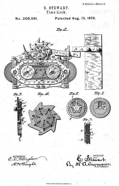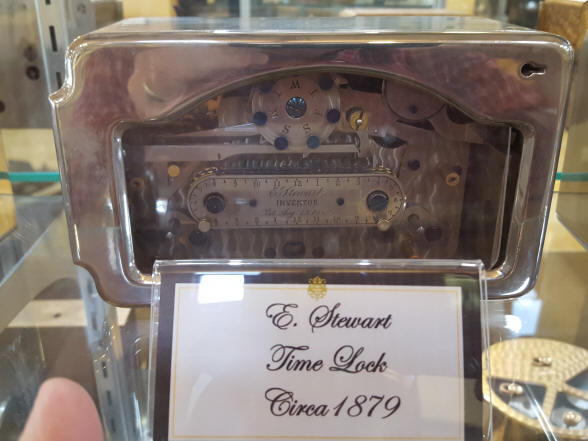 Edward Stewart time lock. These two independent setting systems allows the lock