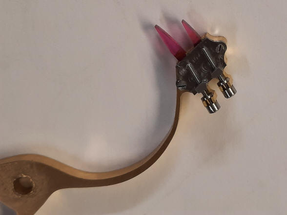 foreground is the knurled knob, background the red jewel pallets, and a portion