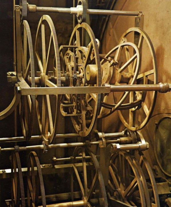 depicts the gear trains for the moon’s phases as well as its cycling