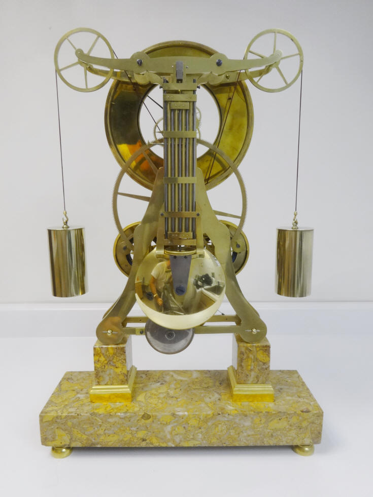 some skeleton clocks where the main wheel is greatly over-sized. This allows